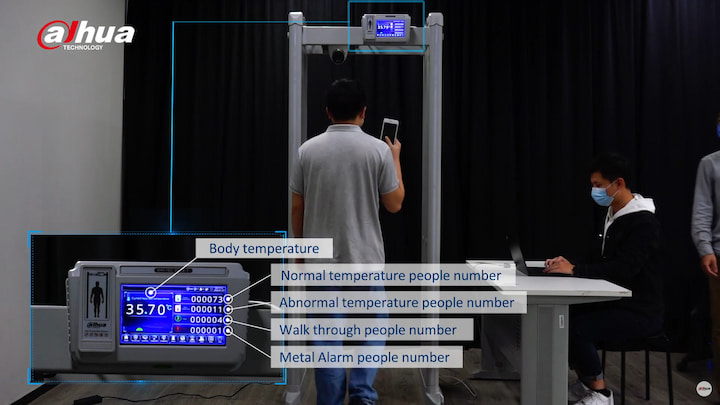 Cổng dò kim loại DAHUA DHI-ISC-D718-T có thiết kế khá đơn giản. Thiết bị bao gồm camera theo dõi nhiệt, máy chủ, bộ tạo tín hiệu tần số cao, bộ thu tín hiệu và cảm biến hồng ngoại.