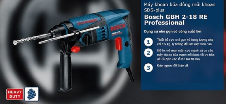 Đặc điểm nổi bật của máy khoan bê tông Bosch GBH 2-18Re
