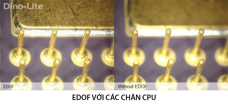- Độ sâu trường kéo dài (EDOF): Để xem bề mặt gồ ghề với phạm vi chiều cao nằm ngoài độ sâu tiêu cự, chế độ chụp EDOF của AM4815TTHER có thể chụp một số hình ảnh ở tiêu cự khác nhau và tự động xếp chúng bằng một cú nhấp chuột. Hình ảnh từ EDOF duy trì chất lượng hình ảnh từ hình ảnh gốc của nó cũng có thể được xem xét trong DinoCapture 2.0.