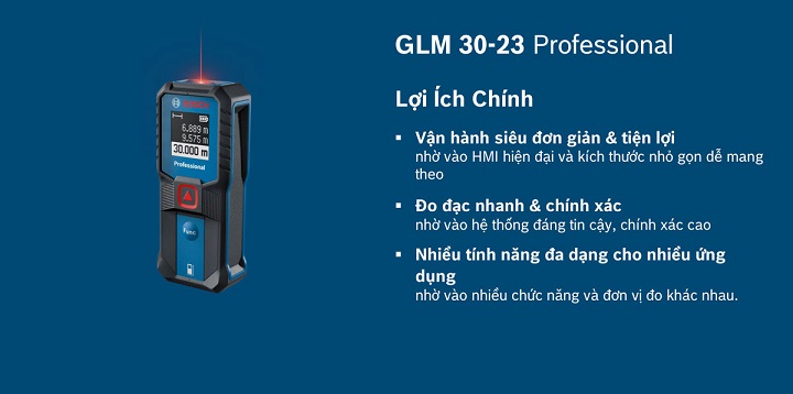Máy đo khoảng cách laser Bosch GLM 30-23 có phạm vi đo tới 30m