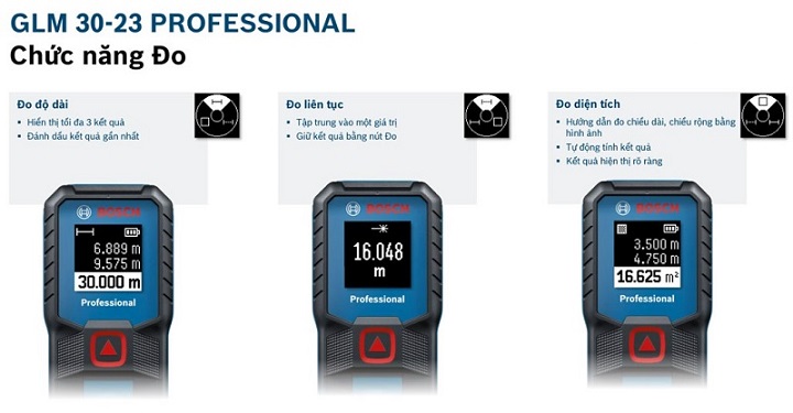 Máy đo khoảng cách laser Bosch GLM 30-23 đa chức năng đo