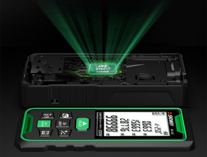 Khác với loại máy đo khoảng cách tia đỏ, dòng SW-50m tia xanh được trang bị bộ phát xanh OSRAM của Đức có bước sóng 500 ~ 535nm và tần số phát xạ cao hơn. Chính vì vậy, thiết bị có thể sử dụng trong nhà hoặc ngoài trời mà không sợ thách thức về môi trường.
