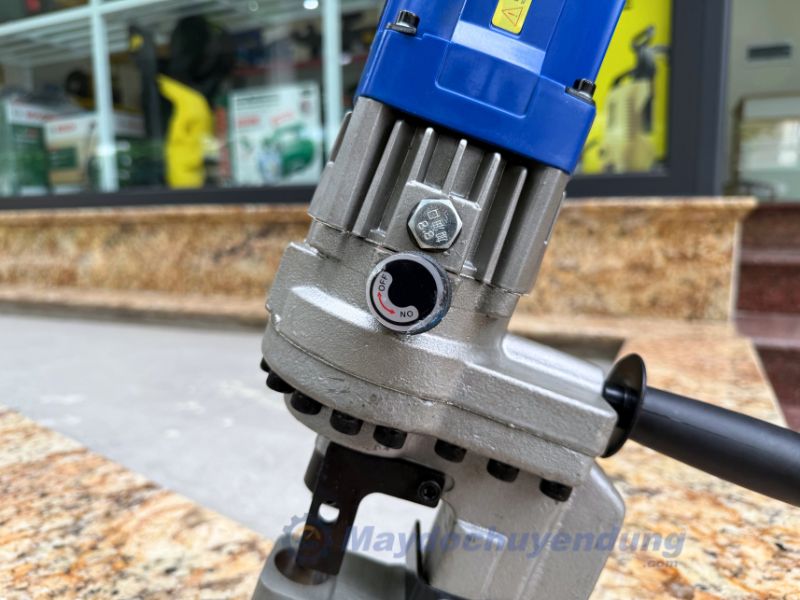 - Lực đột mạnh 10 tấn, giúp đục lỗ nhanh, gọn, không ba via trên thép dày đến 6mm và nhôm, đồng dày 8mm.